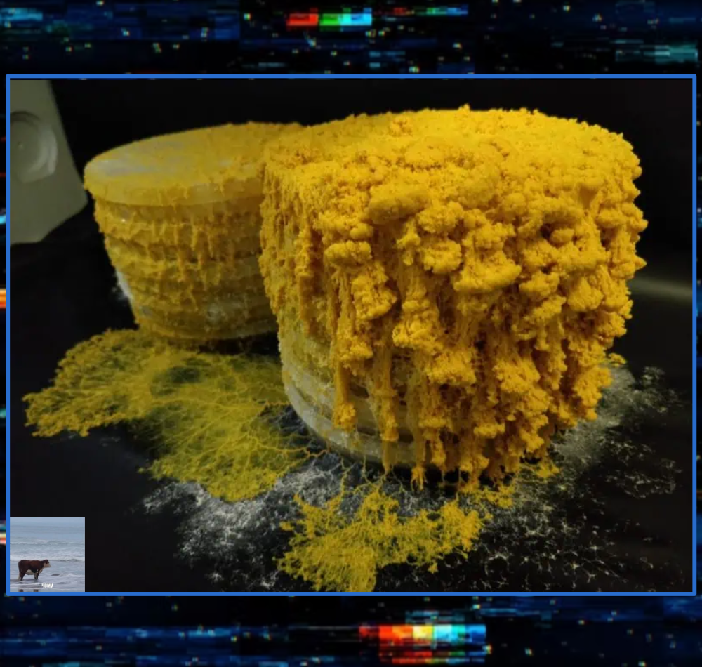Physarum polycephalum - це слизовик (протист): одноклітинний, але багатоядерний організм, який утворює жовту слизову масу (плазмодій), рухається, поглинає їжу всім тілом і здатен “обчислювати” оптимальні шляхи до ресурсів.