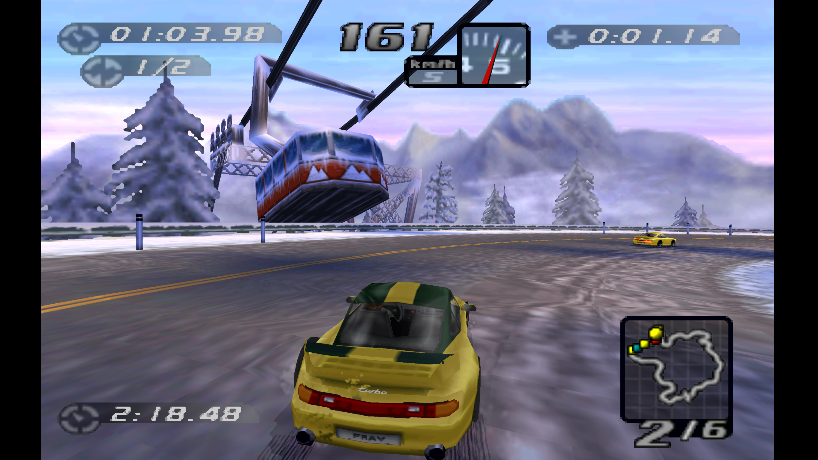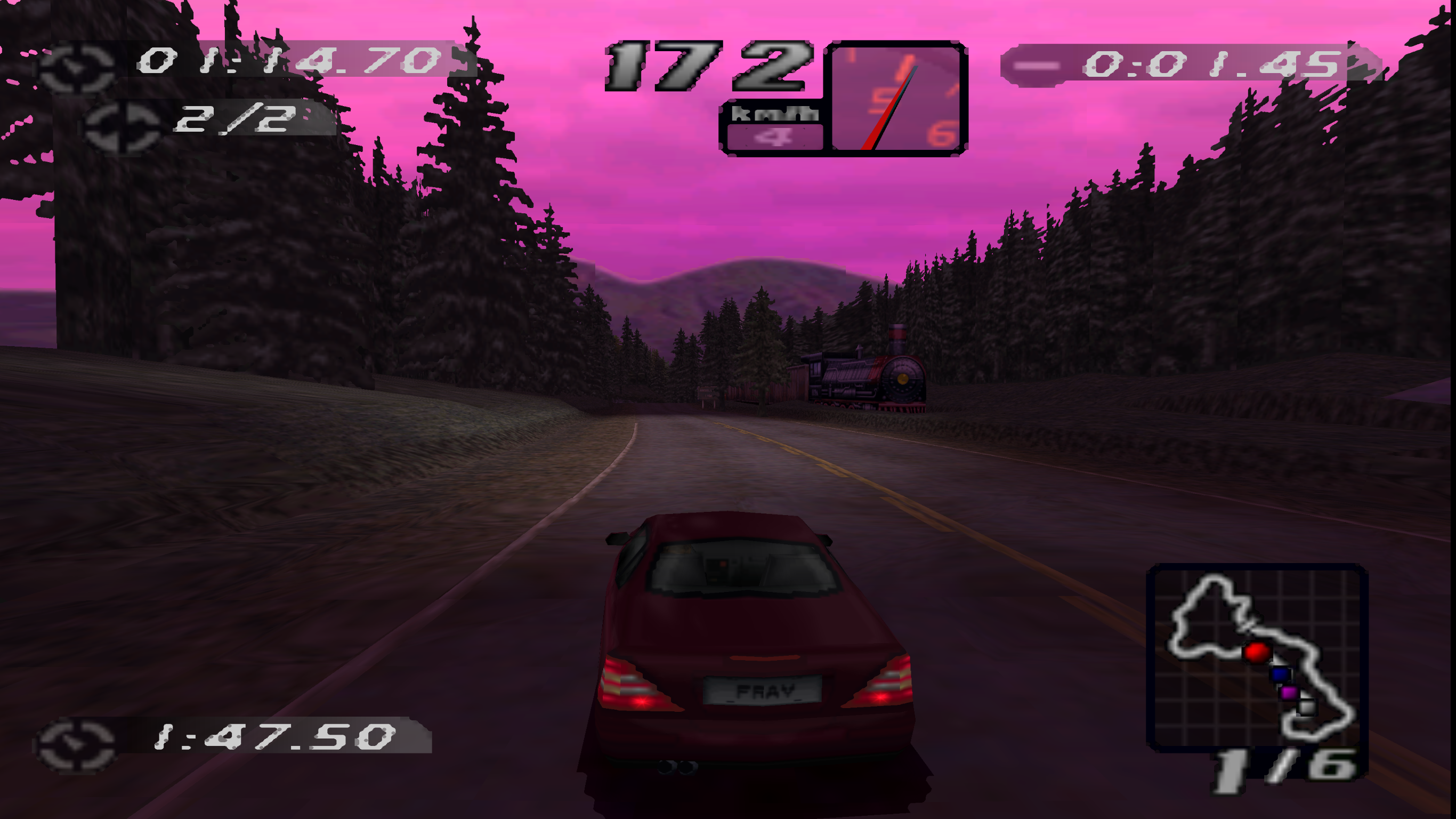 Емулятор позбавляє відчутного падіння фпс, що було присутнє на оригінальній приставці. Здійснюється це за допомоги оверлокінку частоти емульованного PS1 ЦП зі 100 до 300%. Без такого налаштування кадрова частота в окремих сегментах гонок може просідати до 20фпс. Також використовуючи спеціальний ігровий чіт можна поліпшити дальність промальовки і "відсунути" консольний "Pop-in" (тобто покращені текстури та моделі не так явно прогружаються перед очима). Ну і співвідношення сторін. Емуль дозволяє його розширити зі стандартних 4:3 Єдине що гра не дуже дружить з 16:9 - вона працює з таким співвідношенням але по краях справа та зліва виходить трохи рваний рендерінг, але якщо вибрати 16:10 (як на відео, котрі я тут завантажив), то все працює як треба, ось лише тільки невеличкі чорні вертикальні полоси стає видно по краях, але у процесі гри їх не помічаєш. Все інше, типу текстур та ефектів, тут рідне.