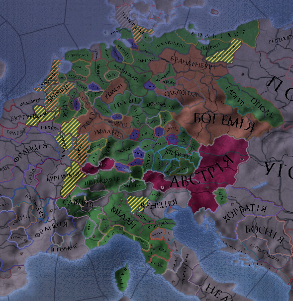Зеленим кольором виділено обрану державу (натиснувши на провінцію іншої держави можна подивитись на її суперників так само).