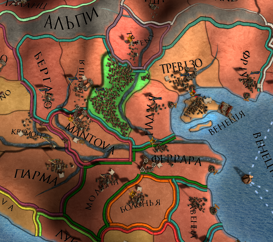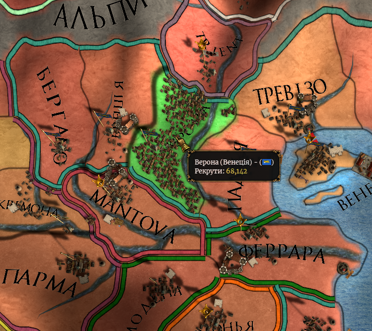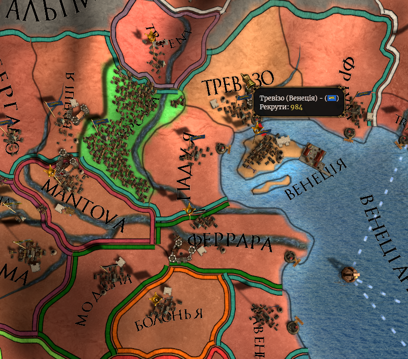 Чим зеленіша провінція, тим більше рекрутів вона дає. (Штучно створений, абсурдний приклад, в грі такого не зустрінеш).