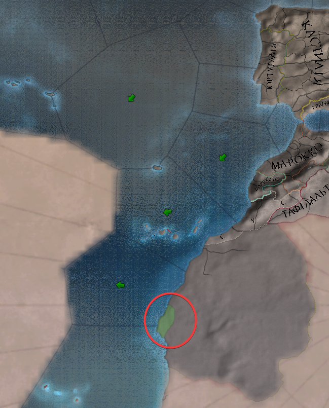 В провінції ТИН, немає інституту феодалізму, але він пасивно поширюється там (через сусідство з провінцією в якій вже є феодалізм), через це на мапі ця провінція заштрихована червоним.