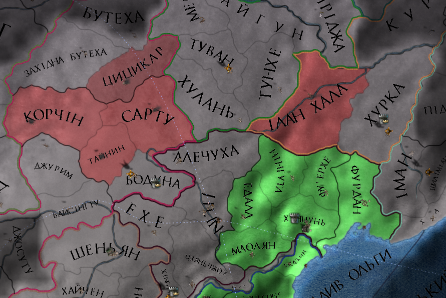 Якщо у володіння наявне процвітання, то володіння виділене зеленим. Процвітання може бути лише в усьому володінні, а не в окремій провінції.